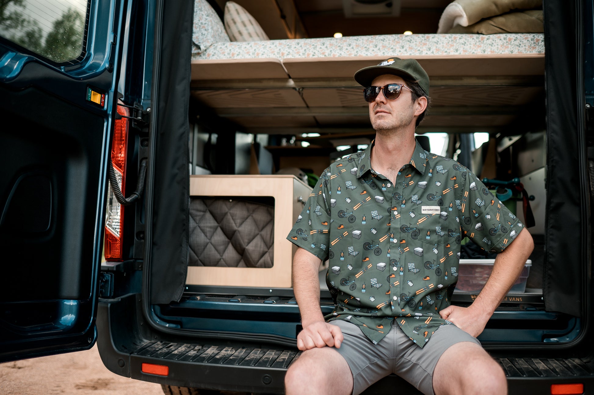 Ready to party? This shirt definitely is! We took some of our favorite outdoor gear and put it on this button-down for your next party, bike ride, Beer Olympics, and everything in between. Stretch-Tech Party Shirts are lightweight, breathable, moisture-wicking, 4-way stretch, and wrinkle-resistant. The sublimation printing process embeds the ink into the fabric's fibers, making the design virtually fade-proof, crack-proof, and peel-proof, even after numerous washes.